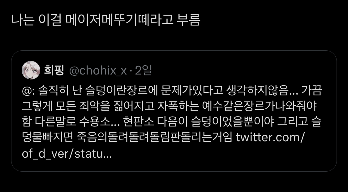 그렇게 마주한...ㄹㅇ 내가 아는 거라곤 이 트윗의 정보뿐인 슬덩의 시작....